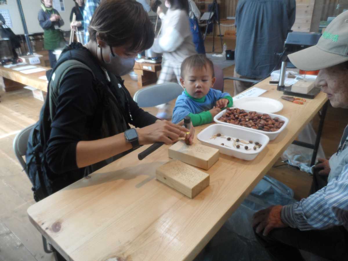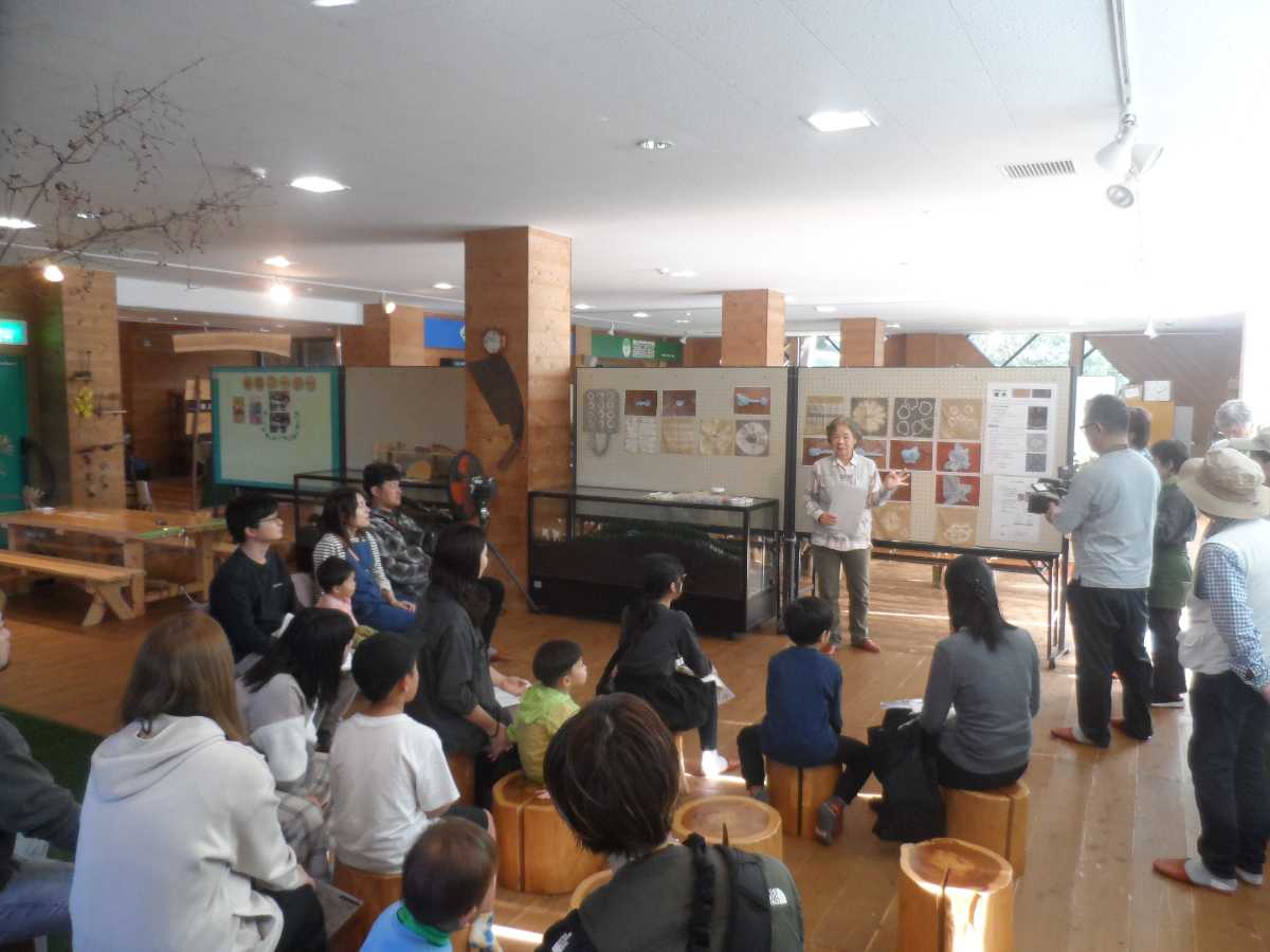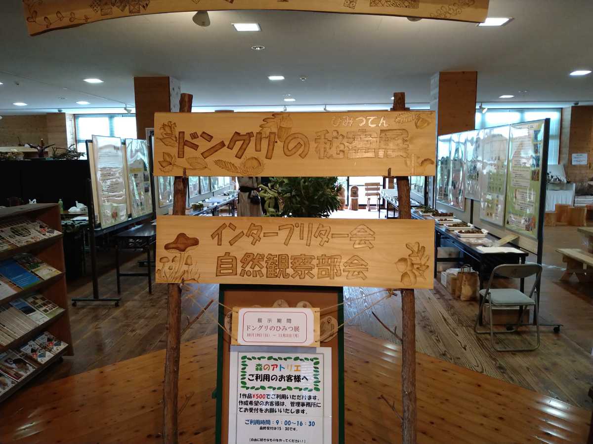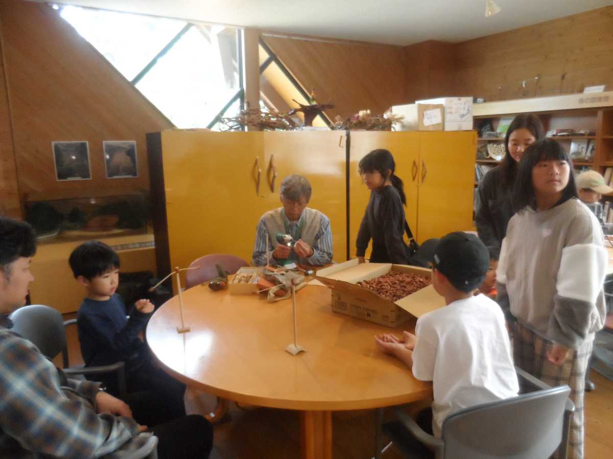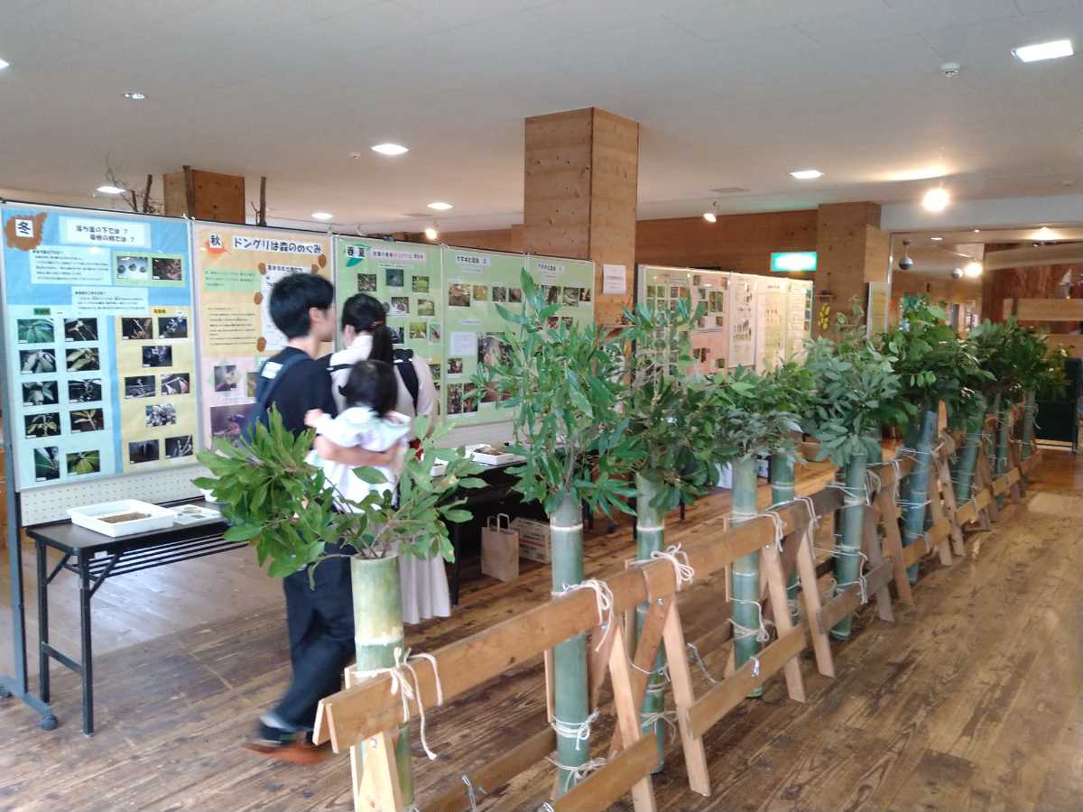毎年恒例となった「ドングリのひみつ展」。今年も殆どの種類のドングリの実と枝が集められました。意外と知られていないドングリの秘密がパネル解説されていました。週末にはドングリに詳しい先生達が終日会場にいてくださり、来場されたお子様たちにやじろべえやドングリ独楽の実演工作を行ってくれました。イベント期間中の10月26日には「ドングリ染め」イベントも実施され、ドングリを使った染め物体験を楽しみました。
