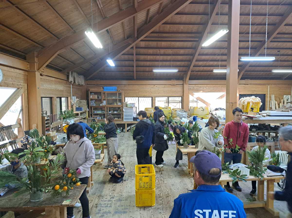 年末の忙しい時期にご参加いただきありがとうございました。今年もギリギリまで材料集めに苦戦しましたが、なんとかイベントに間に合いました。ご参加いただいたお客様のほとんどが初めて門松を作られる方ばかりでしたが、いざイベントが開始されると皆さん手際よく作られていました。オーソドックスな門松、前衛的な門松と様々な門松の誕生に、スタッフ一同楽しませてもらいました。 どうぞオンリーワンの門松でよいお年をお迎えください。