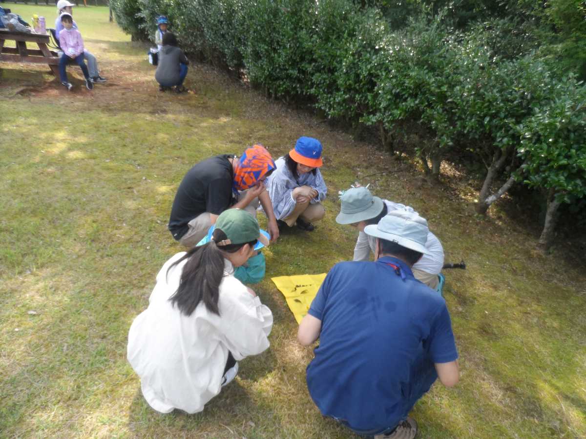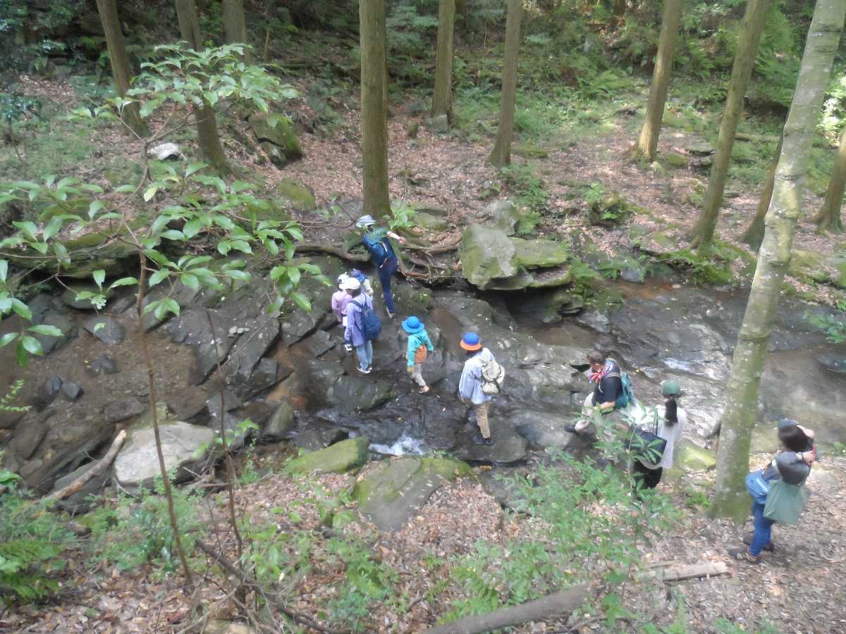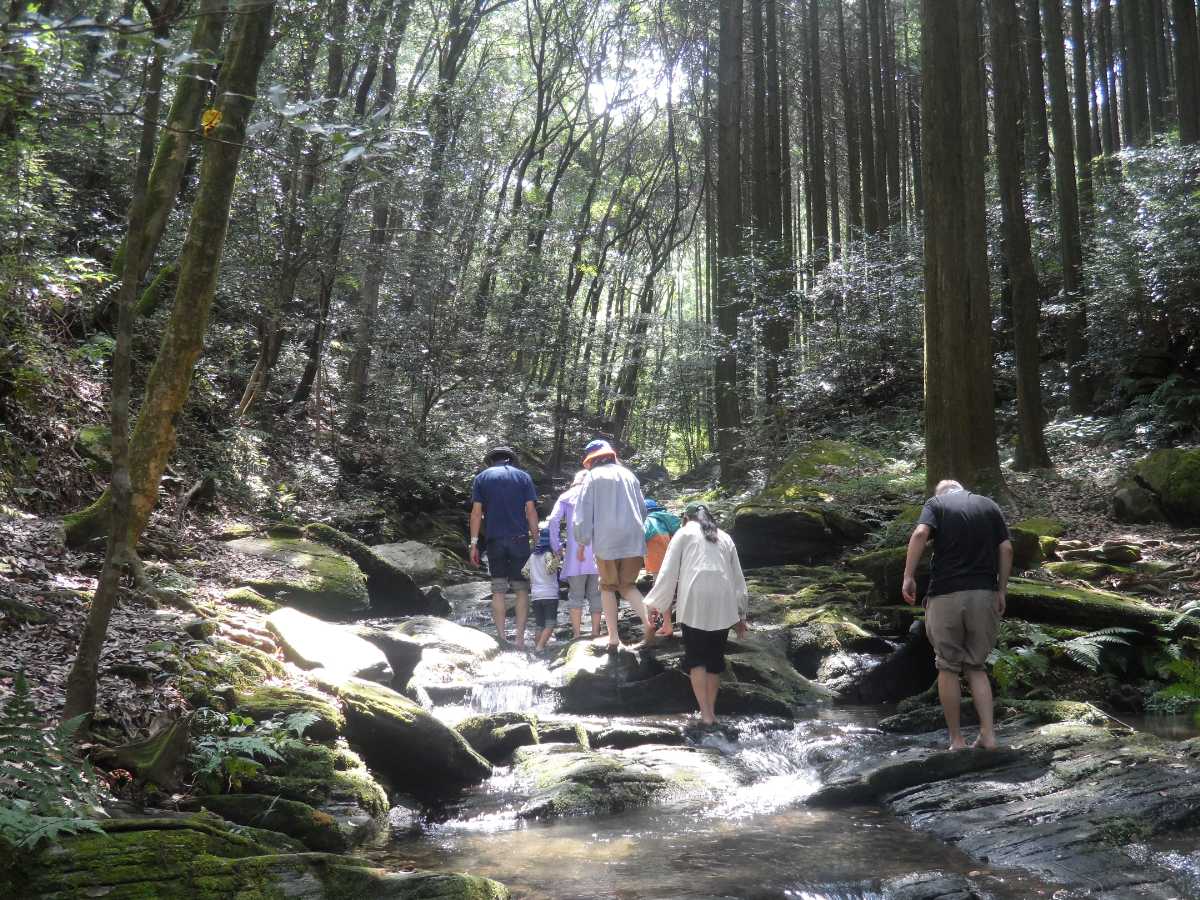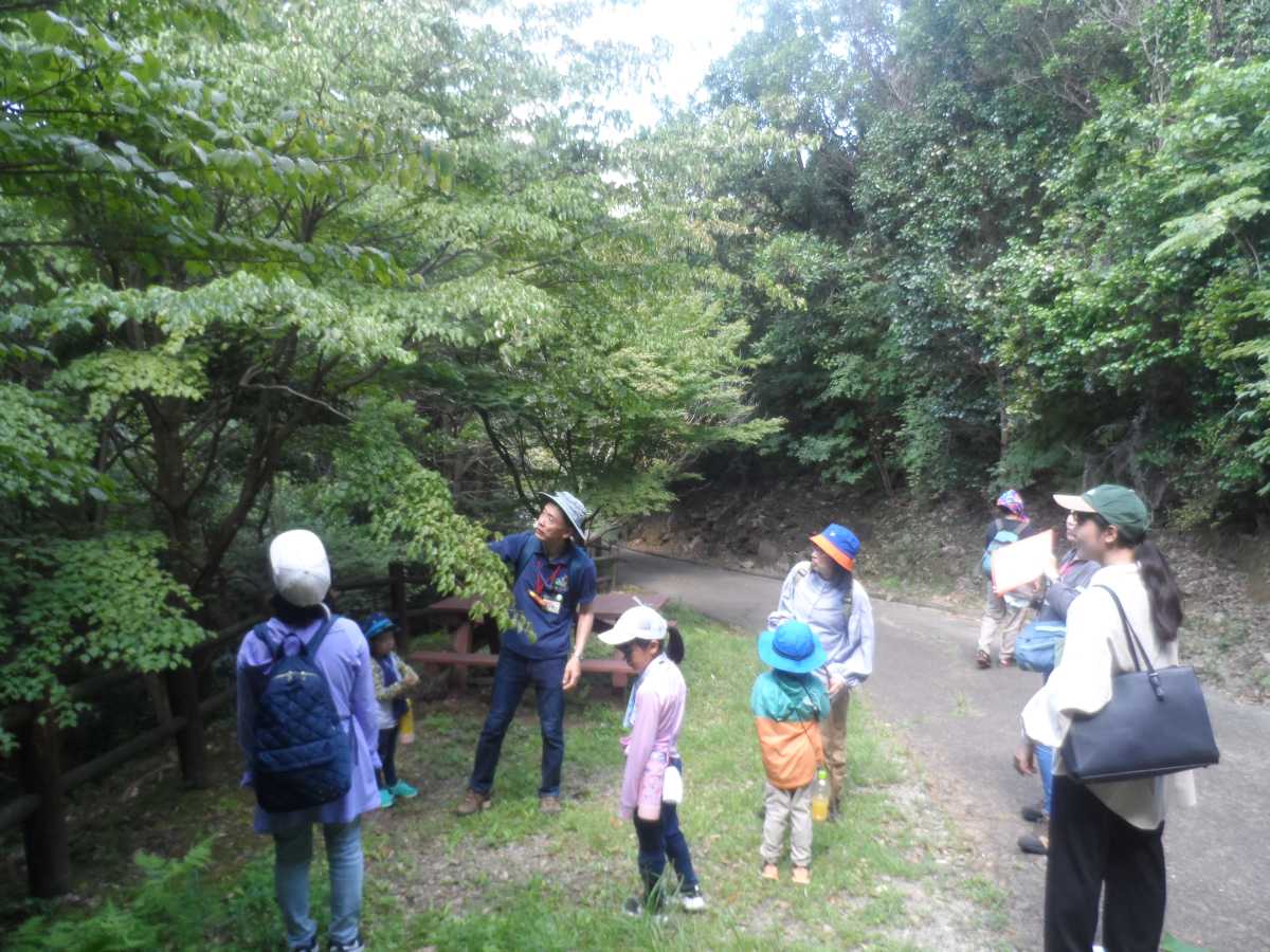 今回はネイチャーゲーム部会の先生たちと一緒に森に入り、自然の中で涼しさを感じるイベントでした。 エアコンや扇風機など便利な家電製品がない森の中だからこそ、風や木陰、そして小川から感じる涼しさを体験できました。